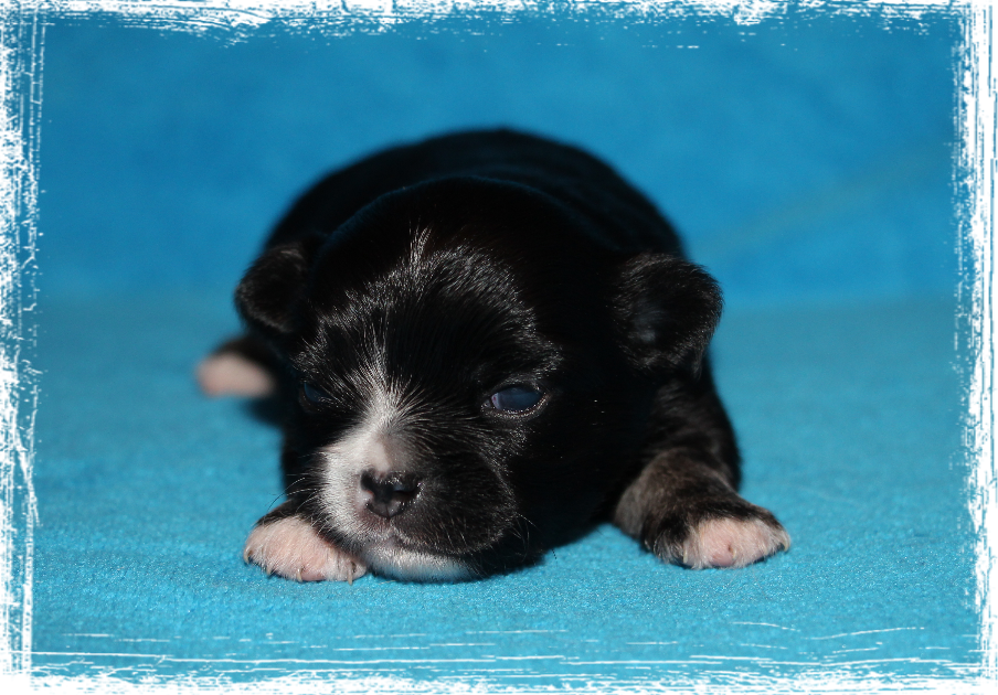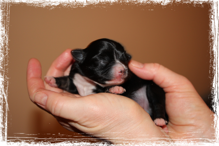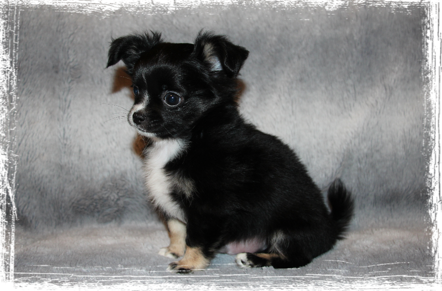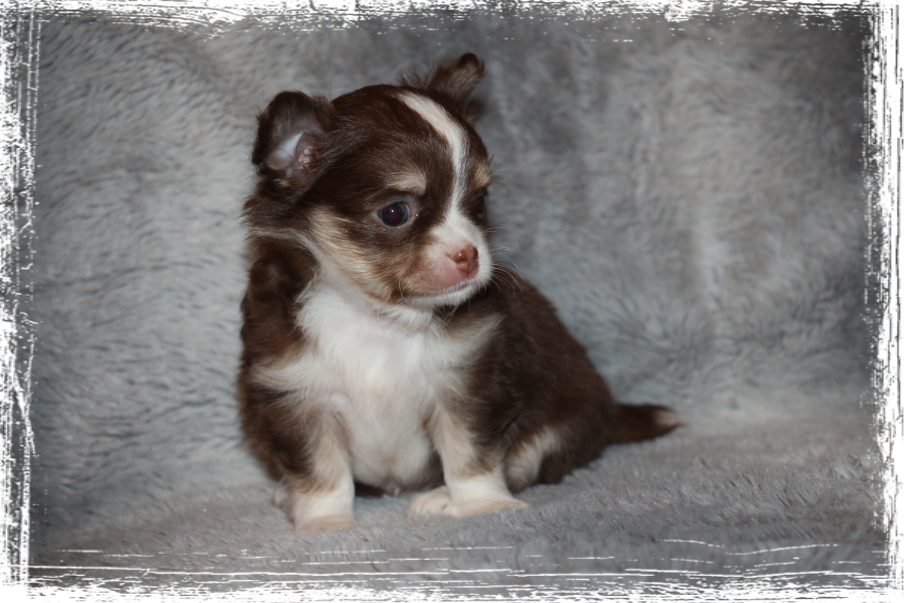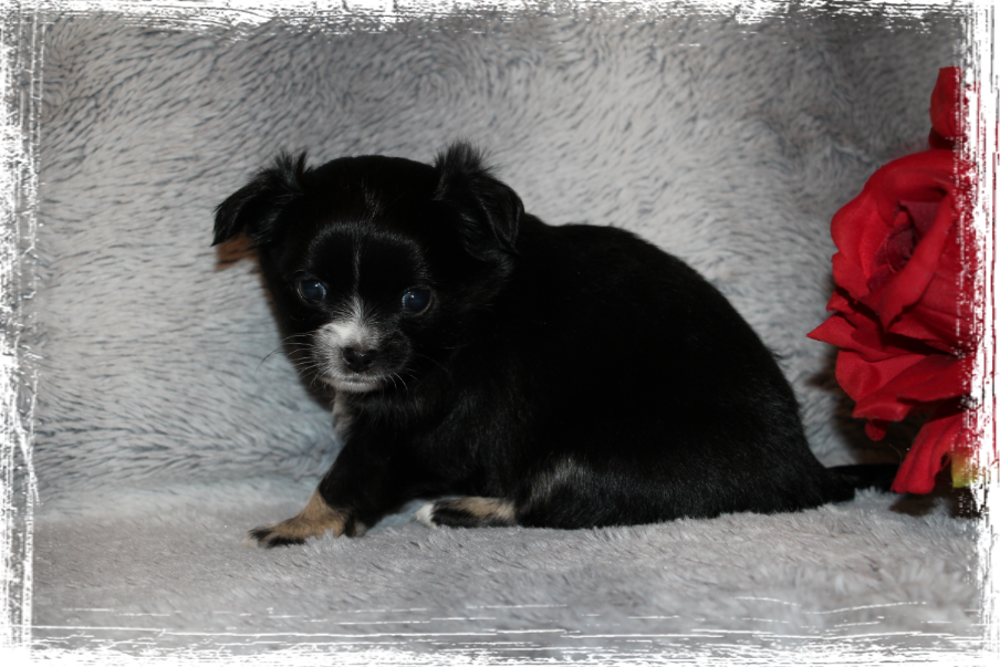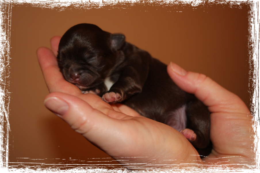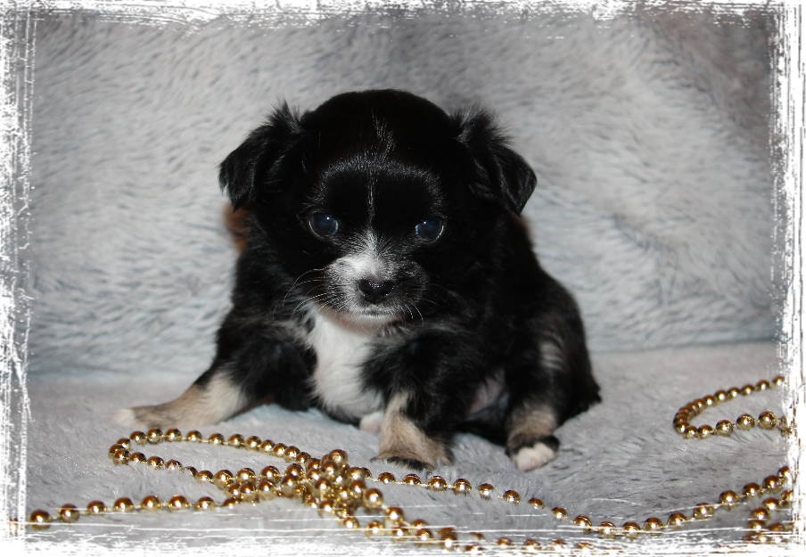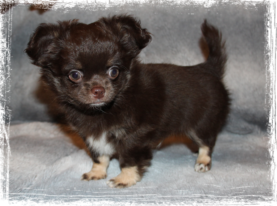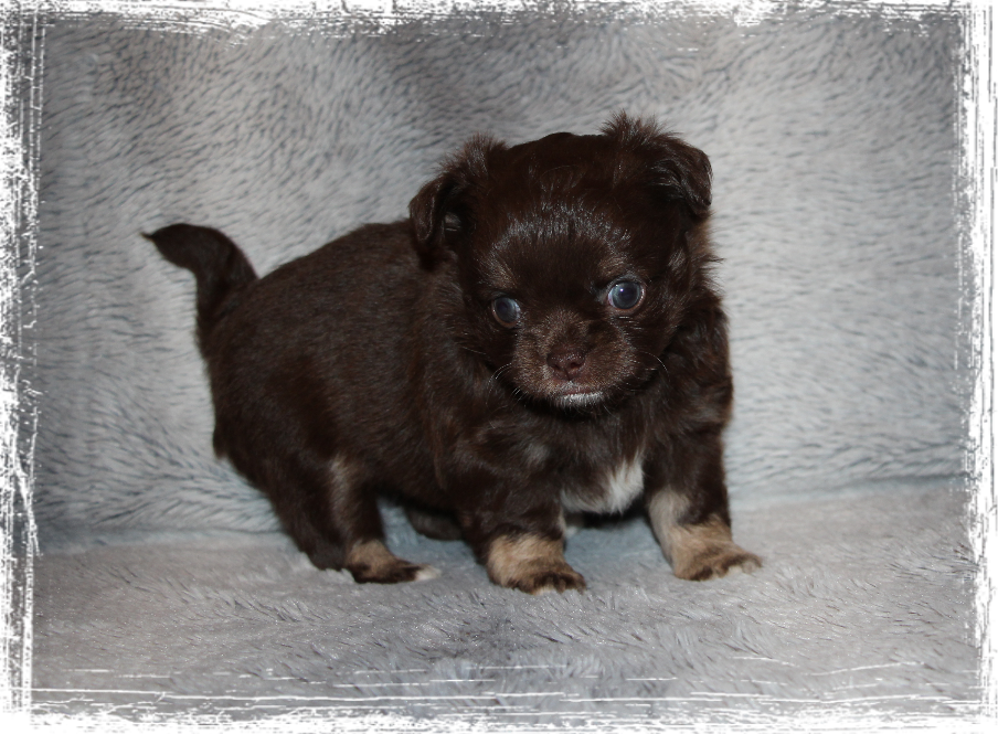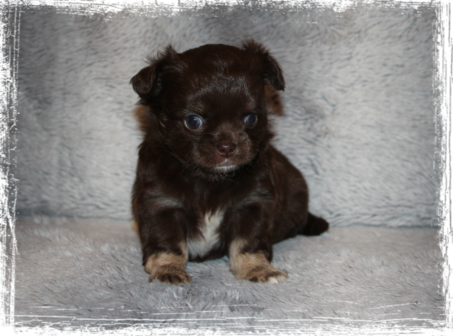 Rüde- Langhaar, dark chocolate- tricolor